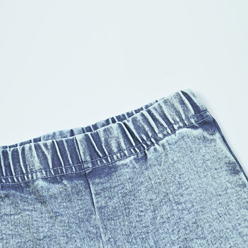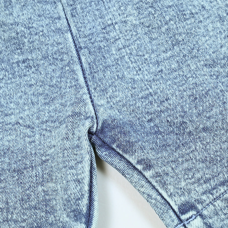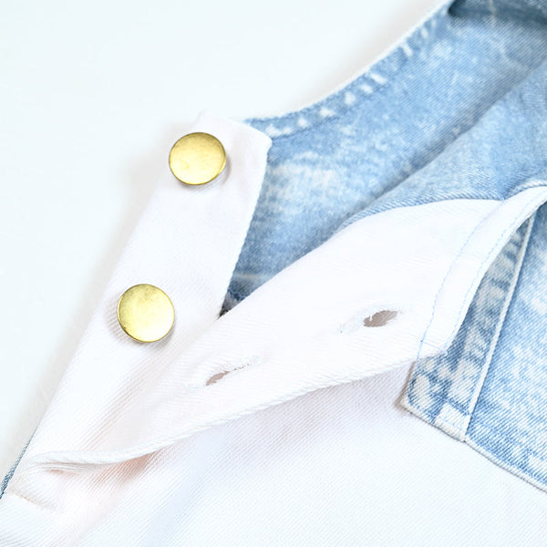 - Denim material: 75% cotton 23% polyester 2% spandex
