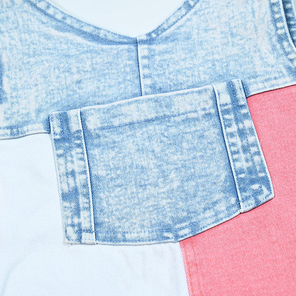 - Pink and White Contrast color Denim Set